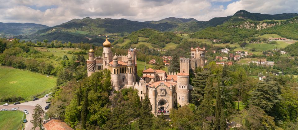 Die Rocchetta Mattei, rund 50 km südlich von Bologna entfernt, ist ein außergewöhnliches Bauwerk im Apennin, das Architektur, Fantasie und Geschichte verbindet. Errichtet ab 1850 vom exzentrischen Grafen Cesare Mattei, vereint sie maurische, gotische und mittelalterliche Stilelemente zu einem märchenhaften Ensemble aus Türmen, Arkaden, Innenhöfen und prunkvollen Sälen. Mattei, Arzt und Erfinder der „Elektrohomöopathie“, nutzte die Anlage als Wohnsitz, Forschungsstätte und Repräsentationsort. Besonders eindrucksvoll sind der „Moorische Hof“ mit seiner Alhambra-inspirierten Ornamentik sowie die kunstvoll gestalteten Mosaike und Fresken. Nach Jahrzehnten des Verfalls wurde die Rocchetta aufwendig restauriert und ist heute ein beliebtes Ausflugsziel für Kunst- und Geschichtsliebhaber. Eingebettet in eine reizvolle Hügellandschaft bietet sie nicht nur faszinierende Architektur, sondern auch einen Einblick in das Leben und die Visionen eines Mannes, der Wissenschaft, Kunst und Esoterik auf einzigartige Weise verband.