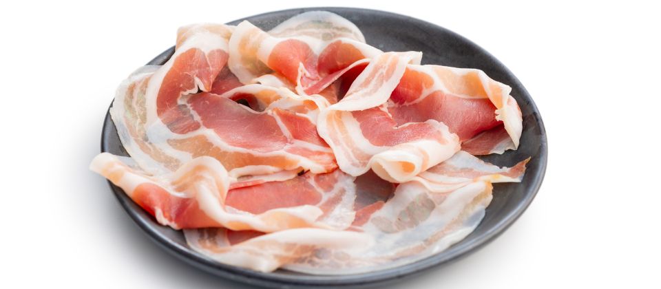 Pancetta Piacentina begeistert mit mild-würzigem, leicht süßlichem Geschmack und cremiger Textur im Mund