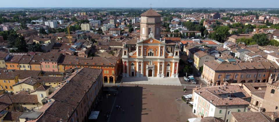 Das historische Zentrum ist von eleganten Arkaden, Renaissancebauten und Sakralarchitektur geprägt. Besonders hervorzuheben sind das Castello dei Pio, ein mächtiger Palastkomplex, und die Kathedrale Santa Maria Assunta, deren Fassade ein Beispiel für den Übergang von der Renaissance zum Barock darstellt. Die Arkadengänge laden zu Spaziergängen ein, während zahlreiche Cafés und kleine Geschäfte den Platz beleben.