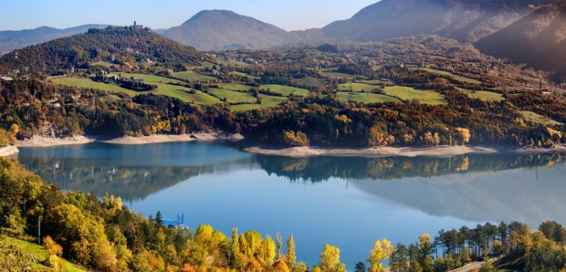 Der Lago di Brasimone ist ein ruhiger Stausee im Bologneser Apennin, beliebt zum Wandern, Angeln und für Naturerholung.