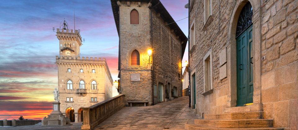 Das Herz der Republik San Marinos ist die gleichnamige Hauptstadt auf dem Monte Titano, rund 750 Meter über dem Meer. Hier thront die Altstadt, umgeben von mittelalterlichen Mauern, die bis heute ihre eindrucksvolle Gestalt bewahrt haben. Da sie autofrei ist, können Besucher ungestört durch enge Gassen, über Plätze und entlang der alten Mauern spazieren.