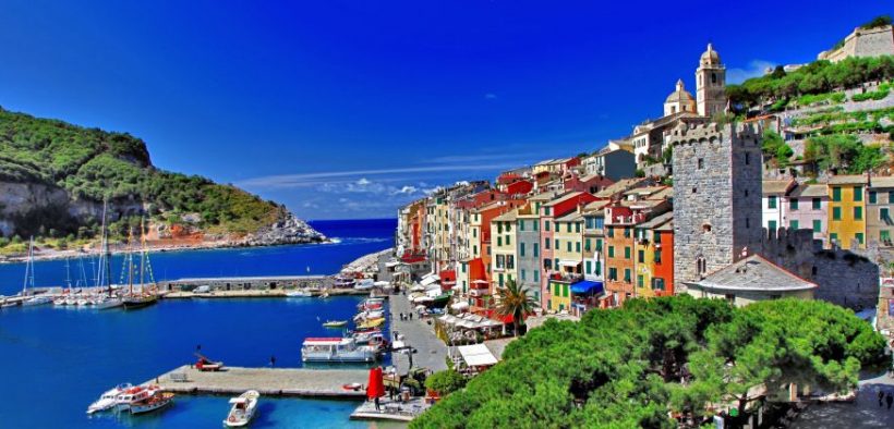 Der Hafen von Portovenere mit seiner Promenade bietet bunte Häuser, Fischerboote, Cafés und einen malerischen Blick aufs Meer.