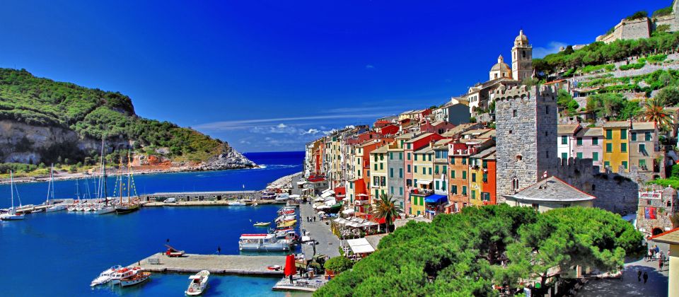 Der Hafen von Portovenere mit seiner Promenade bietet bunte Häuser, Fischerboote, Cafés und einen malerischen Blick aufs Meer.