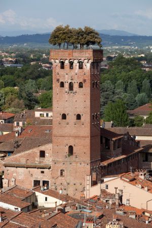 Doch der Torre Guinigi unterschied sich schon damals von anderen Geschlechtertürmen: Nicht nur seine Höhe, sondern vor allem die Idee, einen Garten auf der Turmspitze anzulegen, verlieh ihm eine besondere symbolische Bedeutung. Die mittelalterliche Stadtlandschaft Luccas, geprägt von engen Gassen und zahlreichen Türmen, erhielt damit ein Bauwerk, das sich bewusst abheben wollte.
