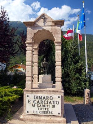 Das Kriegsdenkmal von Dimaro e Carciato erinnert an die Gefallenen aller Kriege aus beiden Ortsteilen und ist ein zentrales Symbol des kollektiven Gedächtnisses der Gemeinde. Es befindet sich nahe der Pfarrkirche im historischen Ortszentrum und fügt sich mit seiner schlichten Gestaltung harmonisch in das Dorfbild ein. Errichtet als Ort des Gedenkens, bewahrt es die Namen jener, die ihr Leben in Zeiten von Krieg und Konflikt verloren haben.