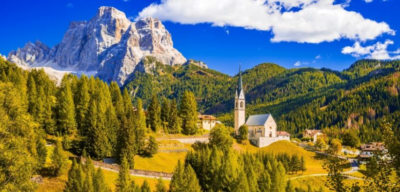 Die Chiesa di Santa Lucia in Selva di Cadore thront in traumhafter Lage mit faszinierender Dolomitenkulisse und Charme.