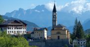 Die Chiesa Parrocchiale della Beata Vergine Maria Immacolata prägt das Bild des Bergdorfes Falcade.