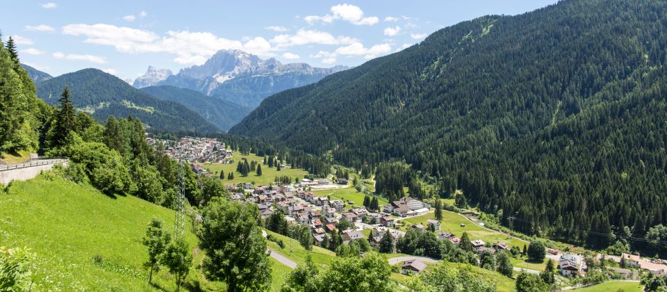 Falcade liegt im Valle del Biois und begeistert mit seiner sonnigen Lage und herrlichem Panorama auf die Dolomiten.