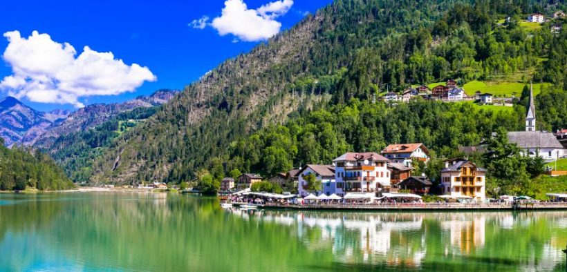 Der Lago di Alleghe in der Provinz Belluno verzaubert mit seiner Entstehungsgeschichte, alpinen Lage und Dolomitenkulisse. Der Lago di Alleghe liegt im westlichen Teil der Belluneser Dolomiten, am Fuß der mächtigen Civetta, eines der bekanntesten Bergmassive der Region.