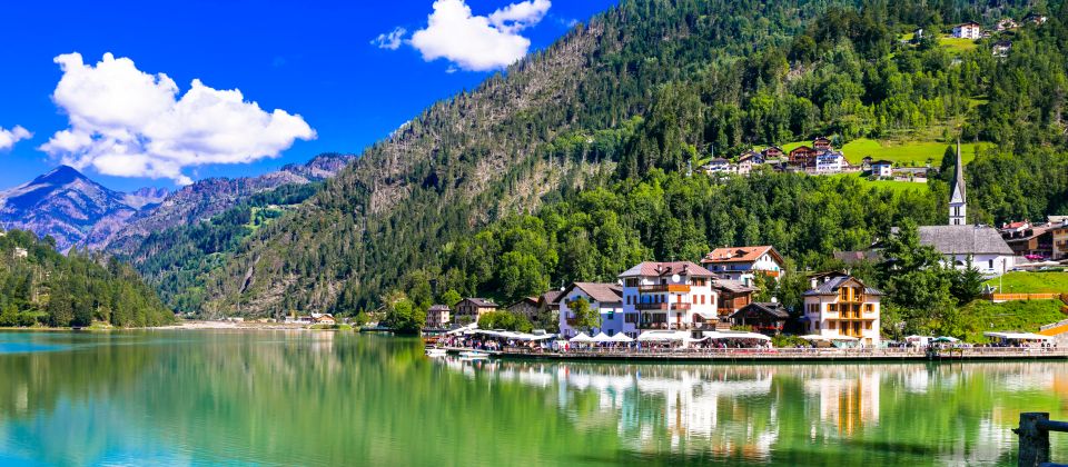 Der Ort Alleghe ist aber nicht nur ein Paradies für Bergsteiger. Mit seinen Hotels, Restaurants und kleinen Geschäften entlang des Ufers bietet er ein harmonisches Zusammenspiel aus alpinem Charme und moderner Gastlichkeit. Die Promenade am See lädt zu Spaziergängen ein, bei denen man den Sonnenuntergang über den Dolomiten genießen kann.