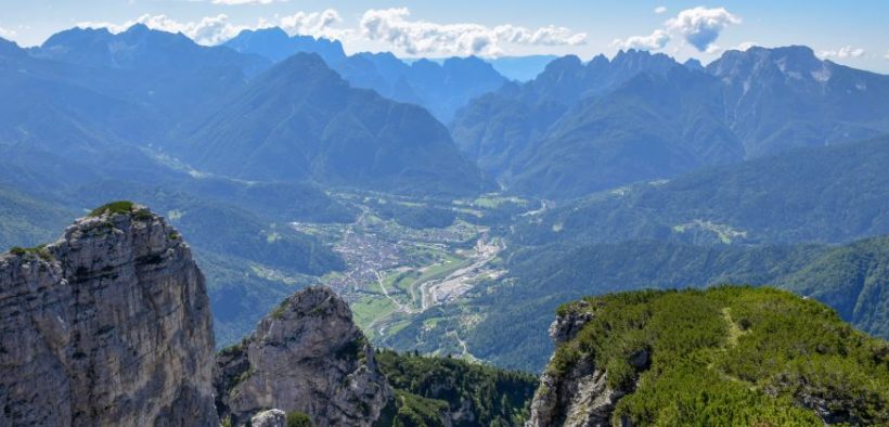 Aussicht von der Tissi-Hütte auf Alleghe und das Agordino-Tal.