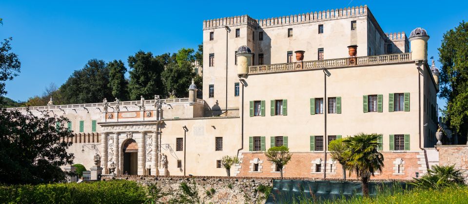 Zwischen 1570 und den folgenden Jahrzehnten entstand unter Andrea da Valle ein Bau, der bewusst Elemente einer mittelalterlichen Festung mit der Eleganz einer Renaissancevilla verband. Zinnen, Wehrgänge, Türme und Terrassen sollten Eindruck hinterlassen – eine klare Botschaft der Macht, die die Familie Obizzi über Generationen hinweg pflegte.