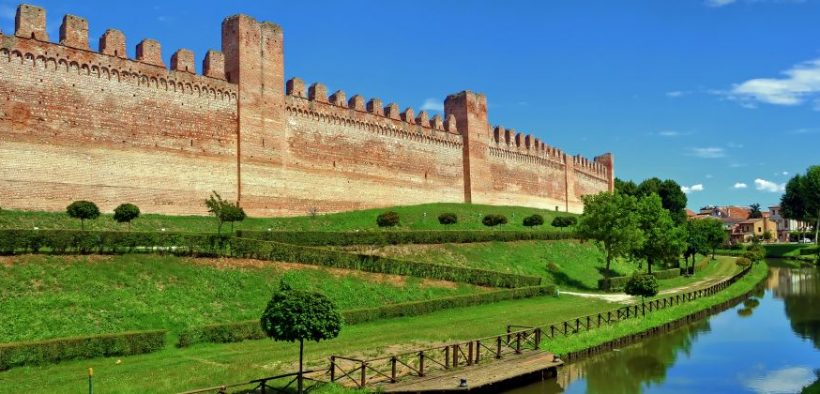 Die mächtige Mauer von Cittadella mit ihrem umlaufenden Wassergraben zeugt von mittelalterlicher Wehrkunst und Harmonie.