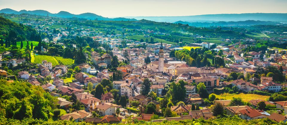 Valdobbiadene in Venetien vereint die Seele der Prosecco-Hügel mit einer jahrhundertealten Kultur des Weins und der Landschaft. Eingerahmt von sanften Hügeln, schmalen Terrassen und goldgrünen Reben liegt Valdobbiadene, eine Stadt, die als Herz des Prosecco-Gebiets gilt und dessen Namen in die Welt getragen hat.