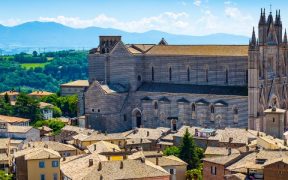 Der Dom von Orvieto erhebt sich wie ein leuchtendes Manifest mittelalterlichen Glaubens über dem Tufffelsen der Stadt.